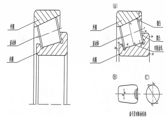 圆锥滚子轴承的内、外圈具有锥形滚道,滚道之间装有锥形滚子。若将锥形面延伸,最终将汇聚于轴承轴线上一点,这种轴承主要用于承受以径向负荷为主的径向、轴向联合负荷。轴承的轴向承载能力由接触角α及外圈滚道的角度决定。